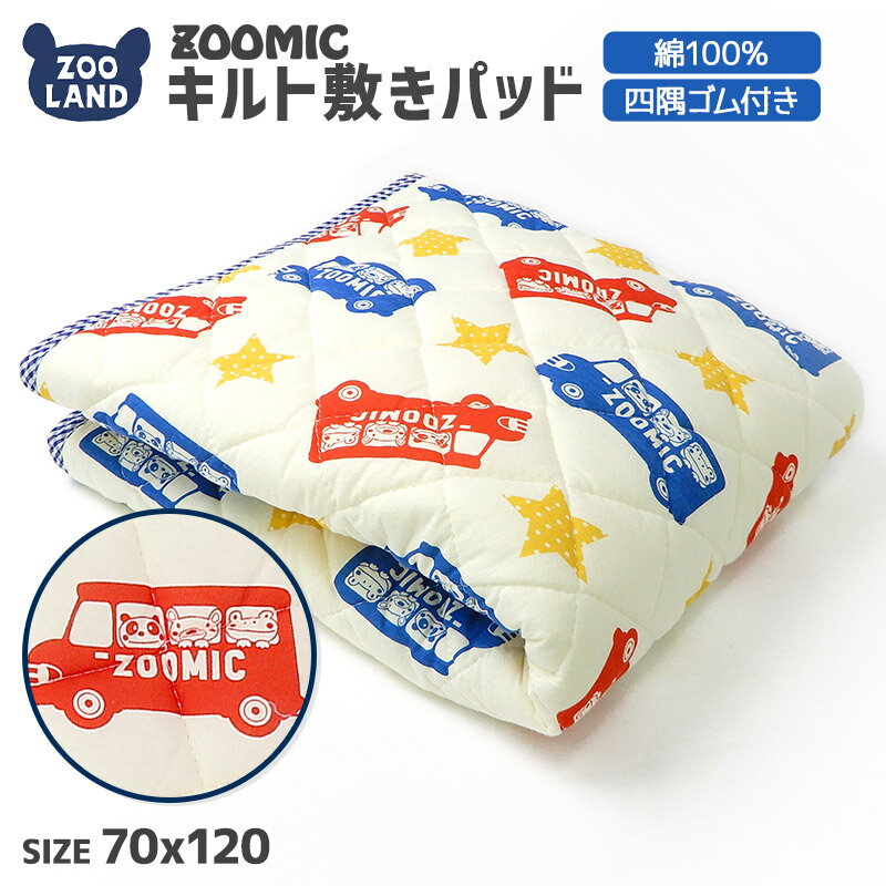 < 寝具 >ズーミック キルトパッド (70x120cm)綿100% 四隅ゴム付き 【ZOOMIC】▽パイピング 敷パッド 敷布団 寝具 ベビー布団 くま パンダ▽