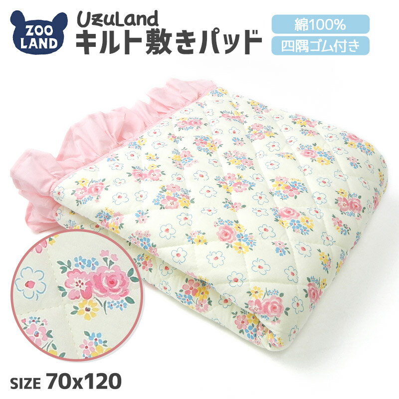 < 寝具 >ウズランド キルトパッド (70x120cm)綿100% 四隅ゴム付き ▽【Uzuland】パイピング 敷パッド 敷布団 寝具 ベビー布団 女の子▽