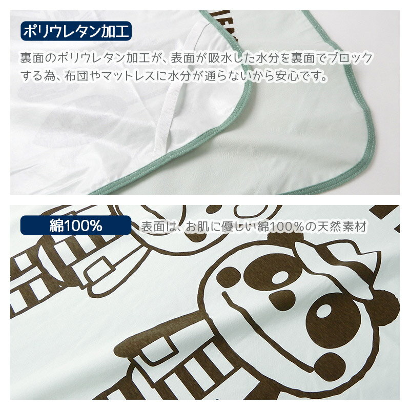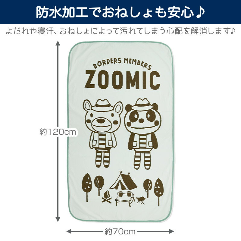 < 寝具 > ズーミック 防水シーツ (70x120cm)綿100% 四隅ゴム付き 【ZOOMIC】▽ポリウレタンラミネート加工 パイピング おねしょシーツ 寝具 ベビー布団 くま パンダ▽