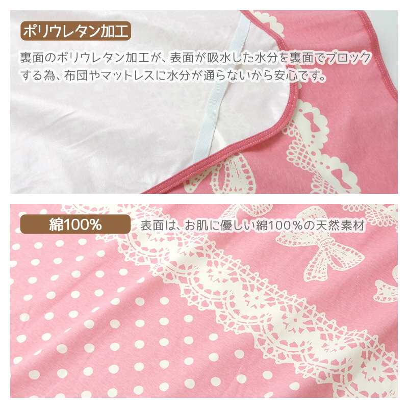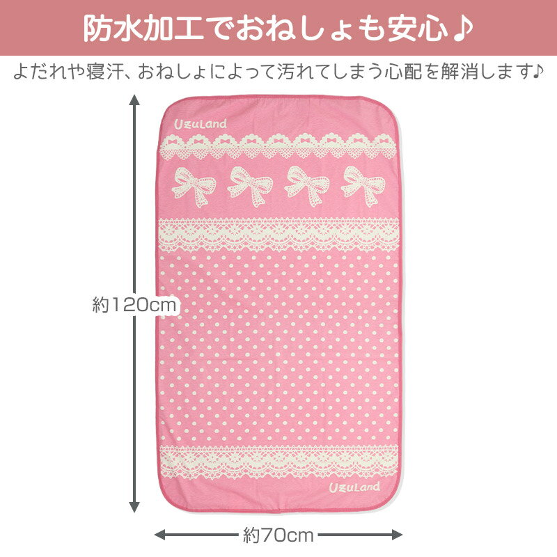 < 寝具 > ウズランド 防水シーツ (70x120cm)綿100% 四隅ゴム付き ▽【Uzuland】ポリウレタンラミネート加工 パイピング おねしょシーツ 寝具 ベビー布団 女の子▽